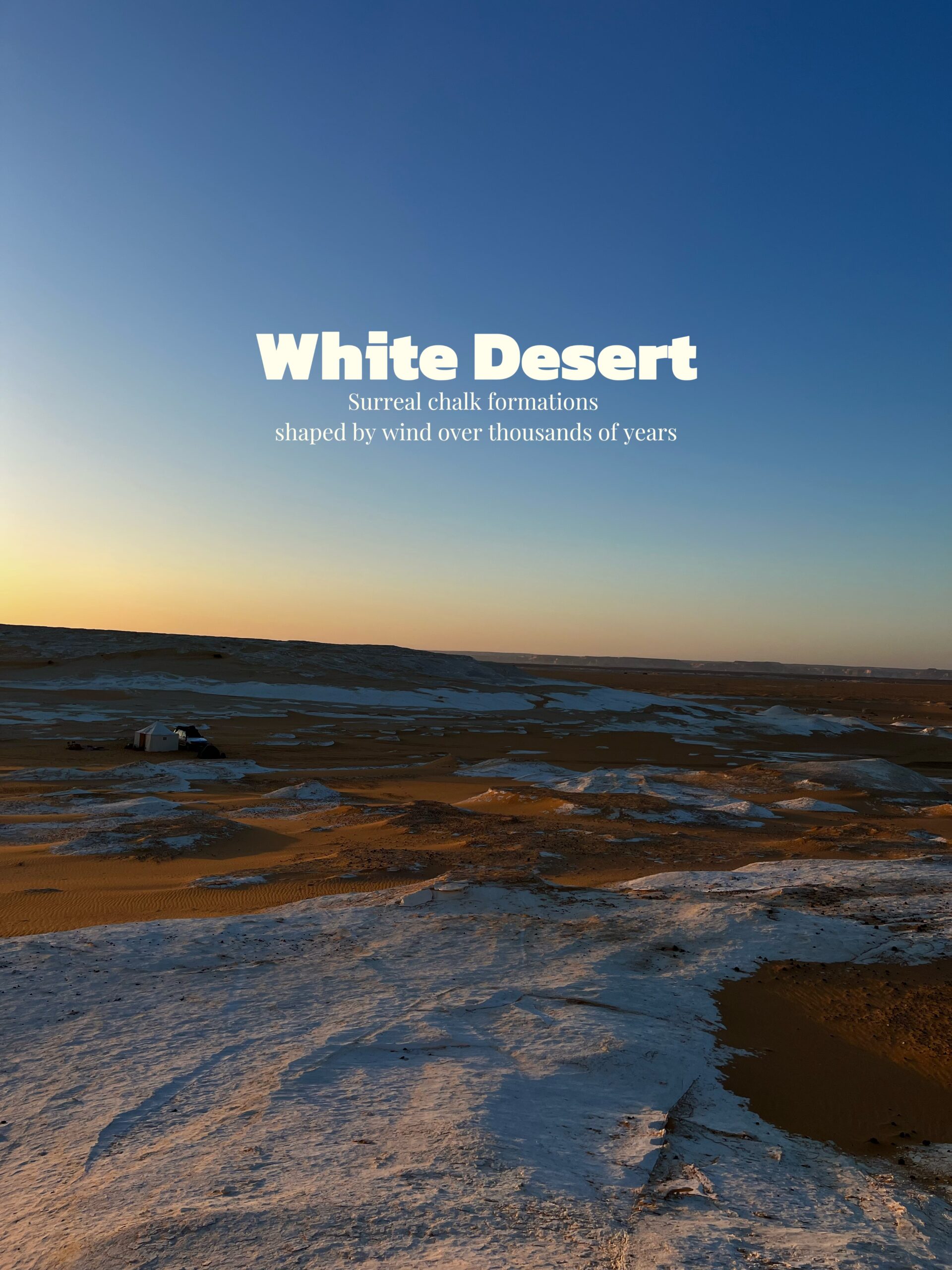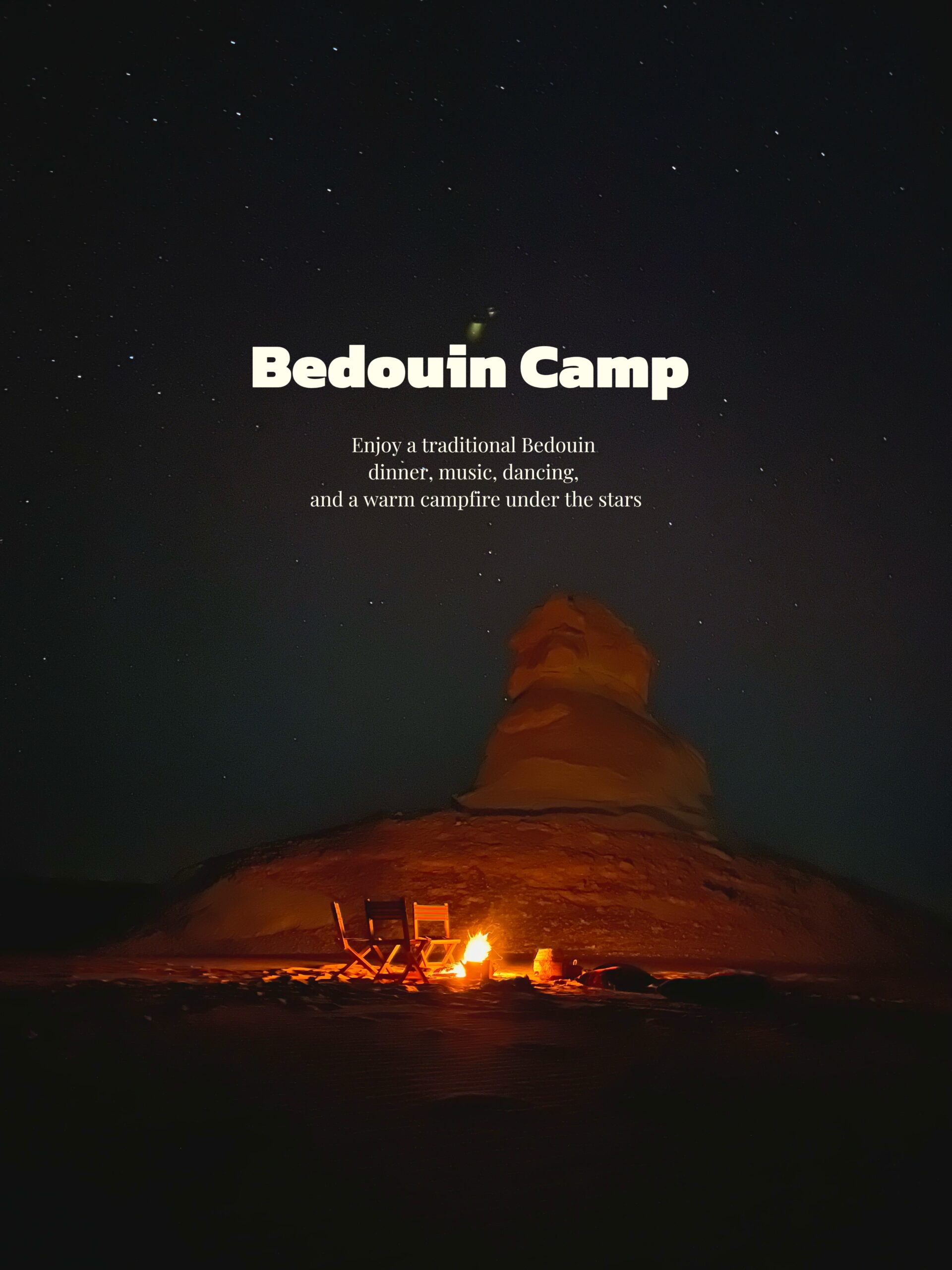 Explore the Black & White Deserts, visit Crystal Mountain and Agabat Valley, enjoy a Bedouin-style campfire night, and sleep under the stars. Wake up to desert sunrise, discover iconic rock formations, and return to Cairo with unforgettable memories